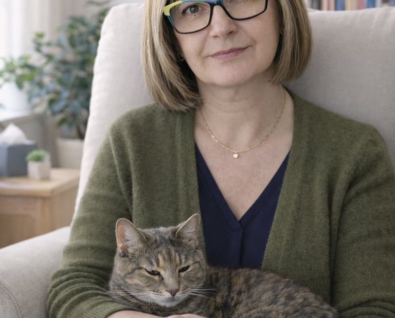 Obecność kota w gabinecie pomaga w regulacji emocji.